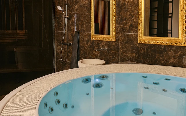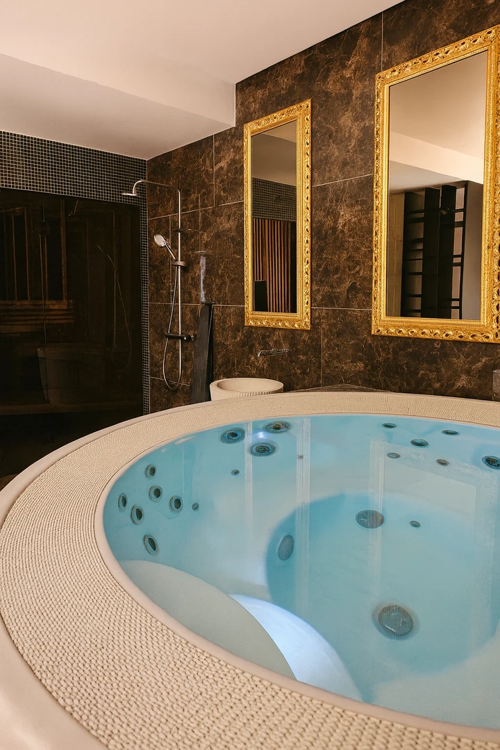 Naše prostorné wellness pro 4–6 osob vám poskytne luxusní soukromí a uvolněnou atmosféru pro menší party či oslavu. Užívejte si relaxační vířivku, finskou saunu a odpočinkovou zónu s pohodlným posezením, kde můžete strávit čas s přáteli bez rušení. Součástí prostoru je kuchyňský kout, kde si připravíte občerstvení nebo namícháte oblíbené drinky.